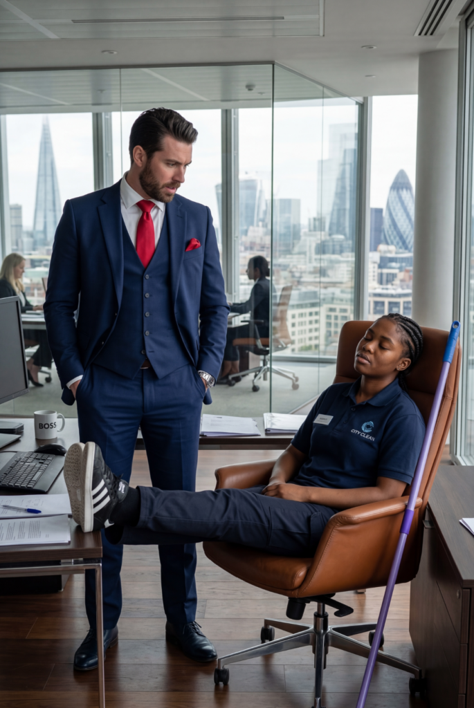 She didn’t beg.She simply sighed with exhaustion.“Good morning, Mr. Herrera.”Santiago was stunned.“What are you doing in my office?”The woman answered simply.“I was tired.”Her name was Miranda.She explained that she had been cleaning the entire building alone all night because her coworker hadn’t come in.