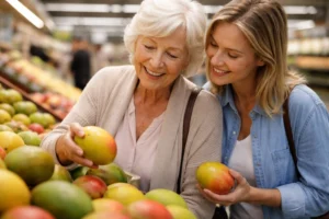 The cashier leaned forward and said, “Take your time. You always pick the best mangoes for me.” My mom lit up. She felt recognized.