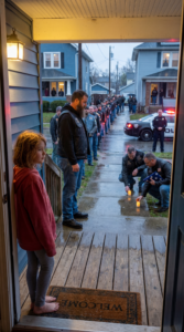 They did not gather in a tight circle. They did not shout greetings. They simply formed a quiet line along the sidewalk in front of Harper’s house.