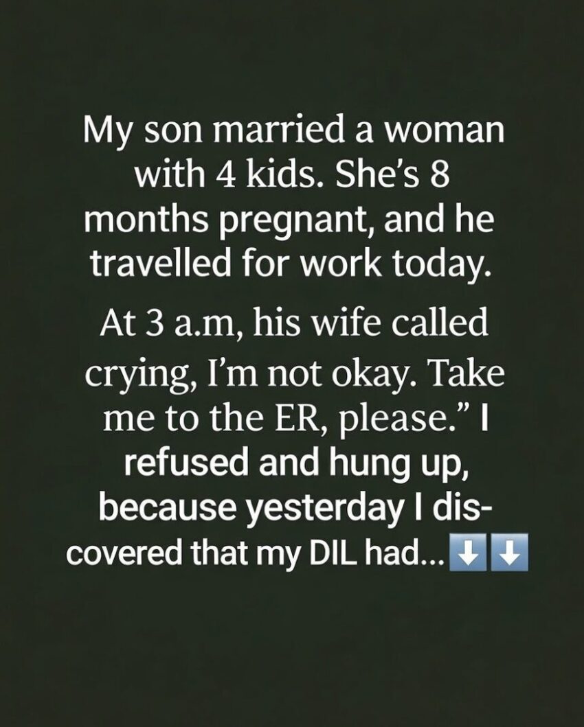 One evening, while my son was away on a work trip, I received a call from Claire at 3 a.m. Her voice trembled as she said,