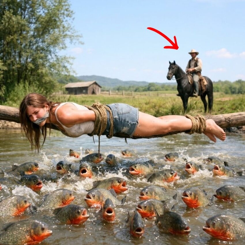 I started with her right wrist. The blade sawed through the wet nylon in harsh, scraping strokes. Sweat ran into my eyes. The piranhas thrashed harder below, sensing change. At last the rope snapped, and her arm fell limp with a cry of pain she somehow swallowed back.
