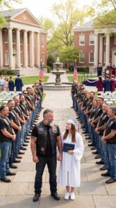 The bikers remained where they were, not as a threat, but as a reminder. Their presence spoke without needing explanation: some moments are too important to take away from someone.