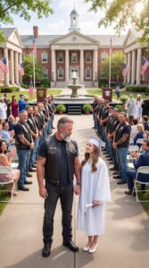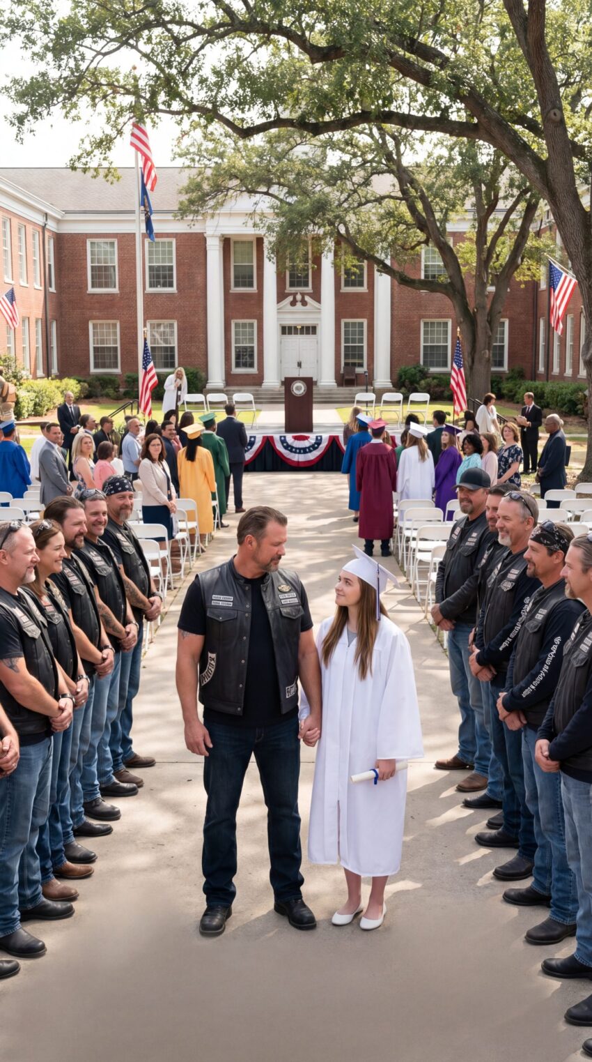 A Biker Father Came to His Daughter’s High School Graduation After Years of Struggling to Stay in Her Life — Until He Was Quietly Asked to Leave and Returned with a Silent Brotherhood That Made the Entire Room Rethink Everything