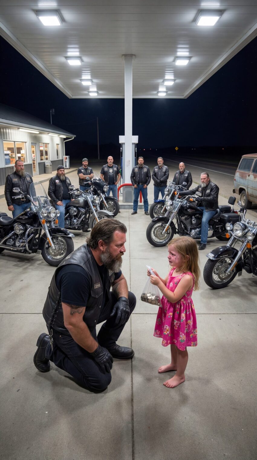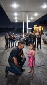 A Lone Highway Biker Stopped at a Quiet Gas Station on a Freezing Kansas Night — Until a Barefoot Little Girl Whispered “Please… my brother is hungry,” Unaware That Her Parents Wouldn’t Wake and No One Else Had Truly Noticed