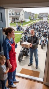 Their presence filled the room before they even reached a table—heavy boots against tile, worn leather vests, shoulders that seemed to carry years of road and weather. Conversations slowed. A few customers lowered their voices. One woman near the window instinctively drew her child closer.