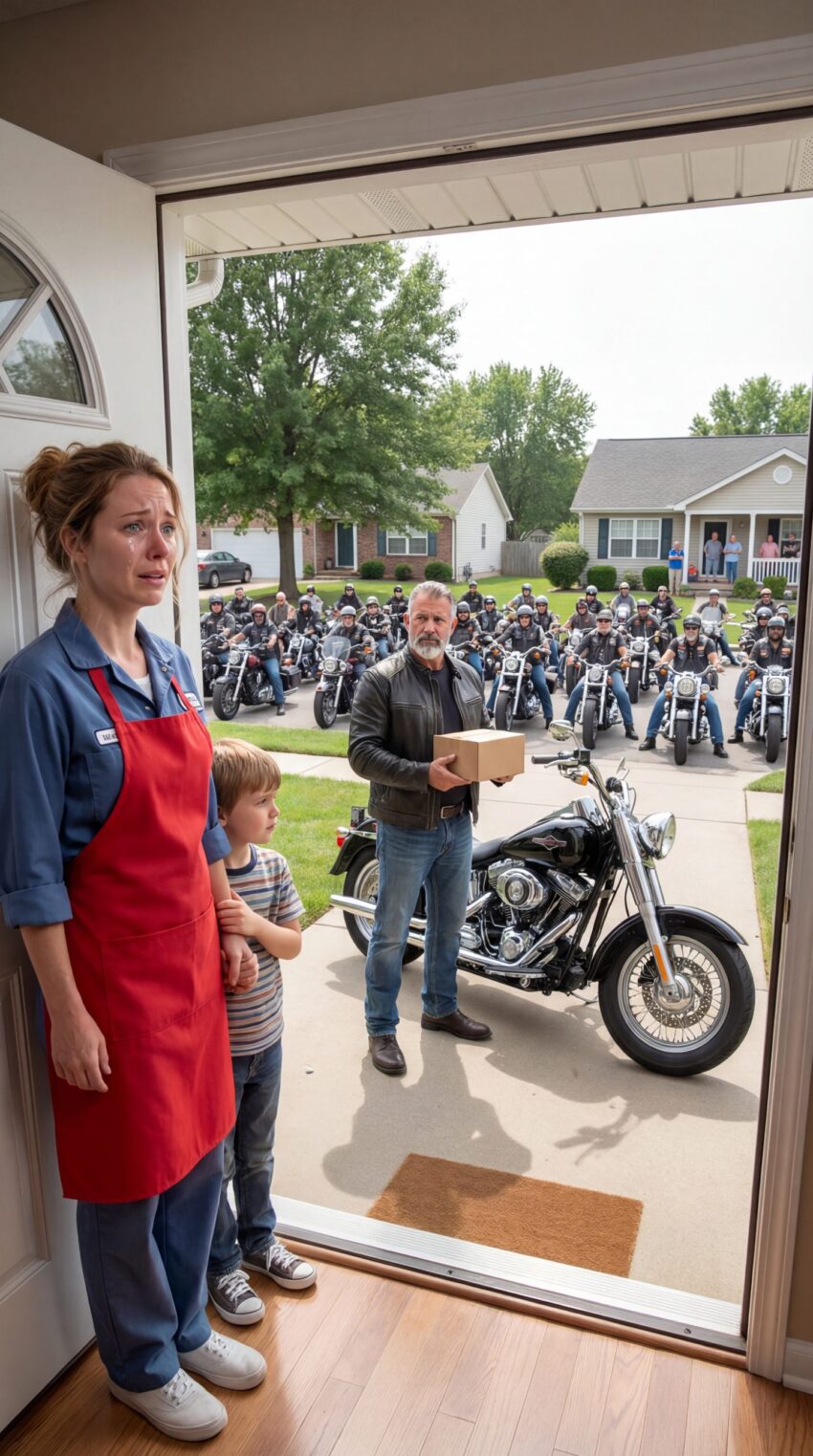 Their presence filled the room before they even reached a table—heavy boots against tile, worn leather vests, shoulders that seemed to carry years of road and weather. Conversations slowed. A few customers lowered their voices. One woman near the window instinctively drew her child closer.