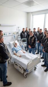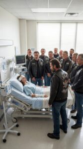 The bikers who took turns watching the doors also took turns bringing her soup, fresh coffee, clean blankets, and medicine exactly on time. A tattooed giant everyone called Boone adjusted her pillows with the care of a nurse. A younger man named Reed fixed a broken lamp so the light would stop bothering her eyes. Another member, Elias, sat on the floor one evening and spent an hour teaching Nolan how to shuffle cards because the boy looked too restless to sleep.