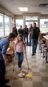 A group of bikers walked in, their movements calm and unhurried. Leather vests, worn boots, quiet confidence—each step felt intentional without being loud.