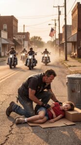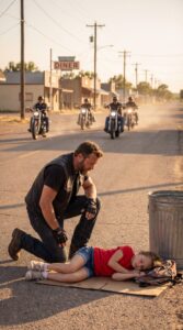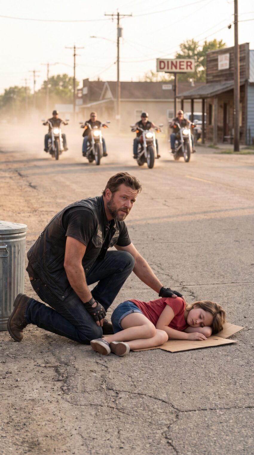 Cole stepped off his bike and carefully handed the girl over. For a moment, his hands hesitated, as if letting go was harder than he expected.