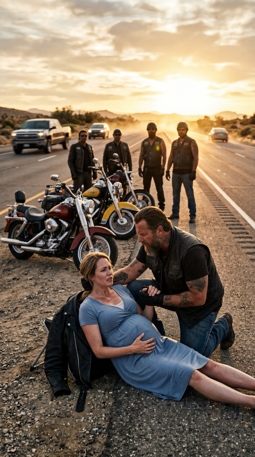 • A Biker Everyone on the Highway Quietly Avoided Watched Drivers Pass a Pregnant Woman Crying for Help on the Roadside — Until He Was the Only One Who Turned Back, Knelt Beside Her, and Refused to Leave as Her Condition Worsened