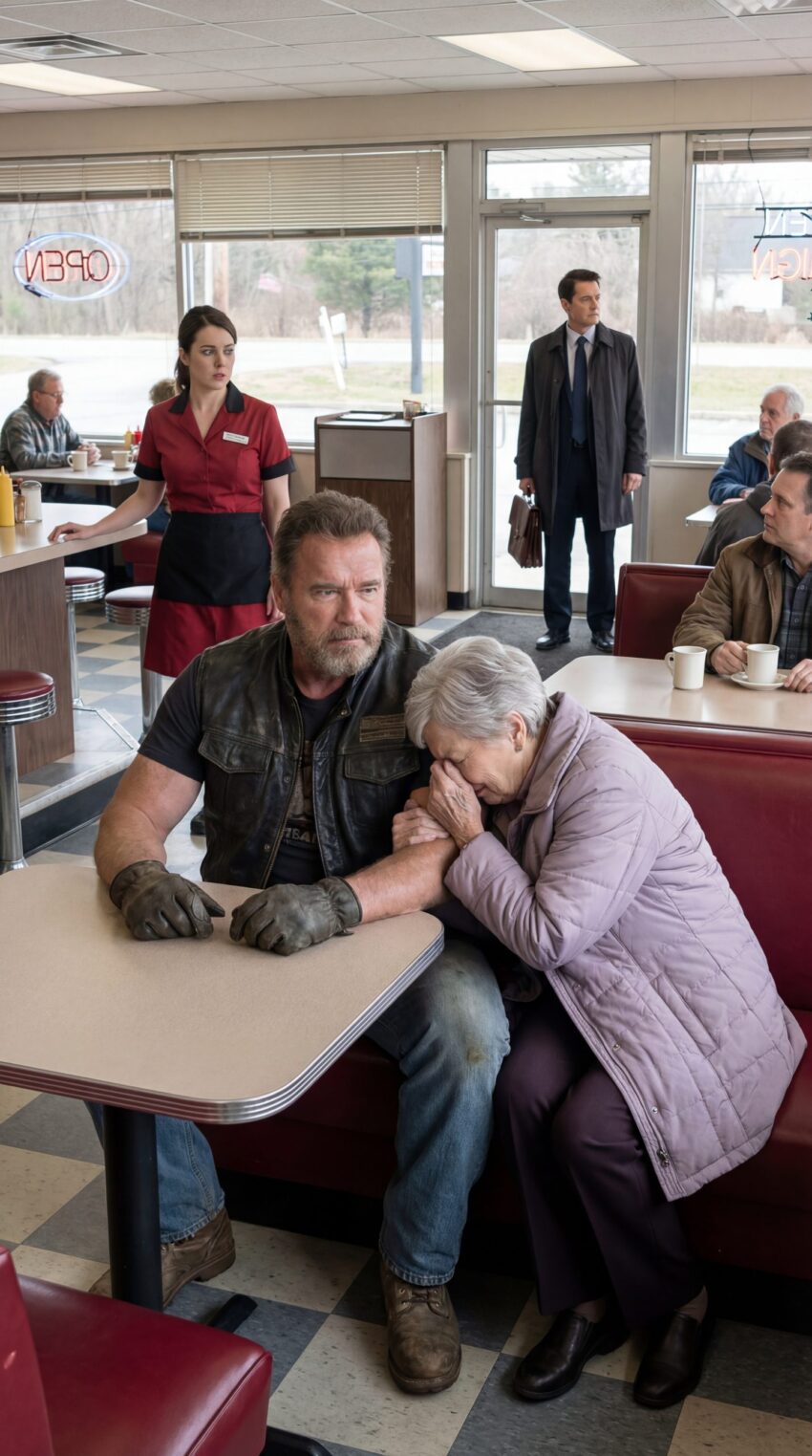 The rain hit the windows of the roadside diner in Carson Valley like a restless hand that refused to stop knocking. Neon light flickered faintly against the glass, casting soft pink reflections across chipped tabletops and half-finished meals.