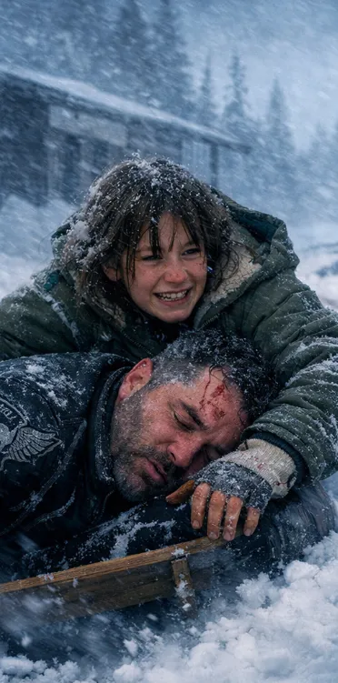 Her boots crunched through the snow as she rushed to him, brushing ice from his face with shaking hands. Blood had frozen along his temple, dark and crusted, and his lips were cracked and pale.