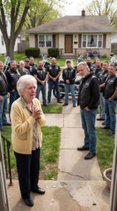 Motorcycles—large, polished, unapologetically loud—lined the street one after another before coming to a stop in front of her home. The engines died, leaving behind a silence that felt even heavier than the sound.