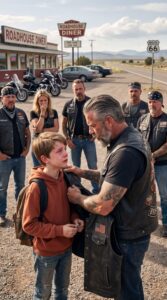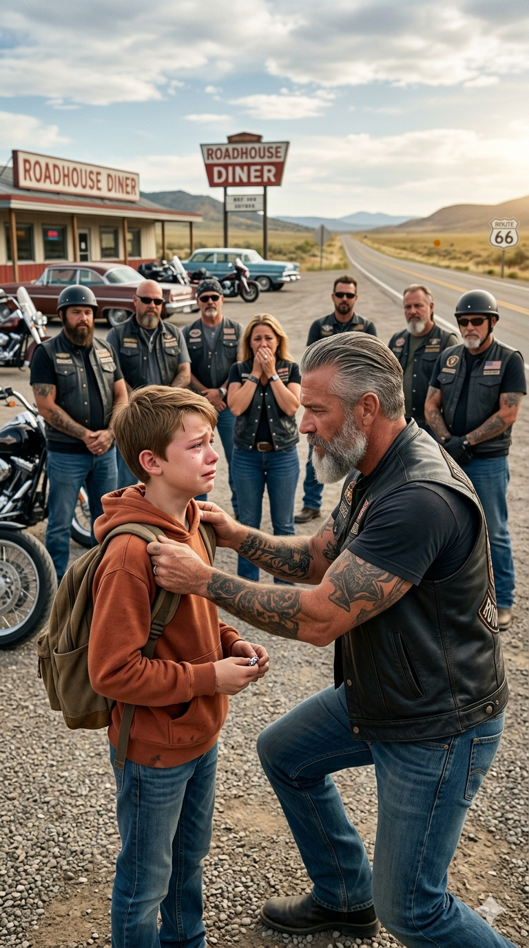 He was thin for his age, wearing worn sneakers, a dark green hoodie that looked a little too big for him, and a backpack clutched tightly against his chest. He did not belong in that picture, at least not on the surface. He looked like the kind of boy most people would overlook in a grocery store line, at a bus stop, or in the back of a classroom. But there was something in the way he stared at those motorcycles that made it clear he had not stopped there by accident.