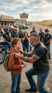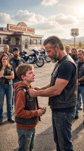 The biker stepped closer to Nolan, not in a threatening way, but slowly, with the kind of care people use when they sense a child is one breath away from breaking down.
