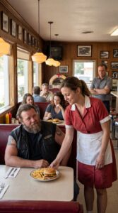 Rain pressed hard against the windows of a quiet roadside diner on the outskirts of Cedar Falls, Iowa. The kind of rain that made the world feel smaller, like everything outside had been washed away except this one glowing place.