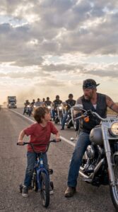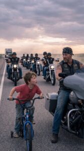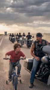 • A Small Boy Refused to Turn Back as He Chased a Biker Convoy Across Miles of Open Highway Alone — Unaware That the Name He Whispered Would Freeze Every Engine and Lead Them Back to the Rider They Thought Was Gone Forever