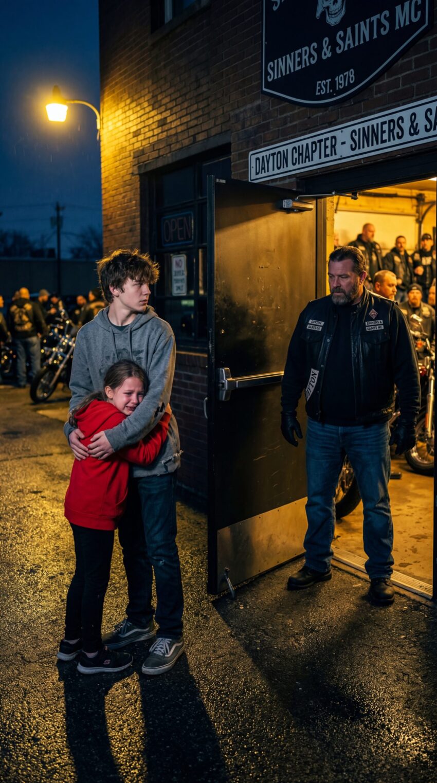 A 16-Year-Old Brother Knocked on a Feared Biker Clubhouse Door at 12:17 A.M., Clutching His Terrified Sister and Begging for One Safe Night — Unaware That the President’s Decision to Open It Would Drag the Brotherhood Into a Conflict No One Saw Coming