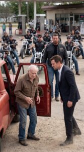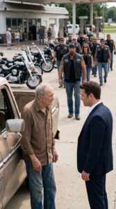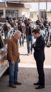 A Well-Dressed Man Tried to Force a Trembling Elder Away From a Gas Pump While Everyone Watched in Silence — But When a Group of Bikers Arrived and One of Them Stepped Forward Saying “That’s My Father,” the Entire Scene Shifted Instantly