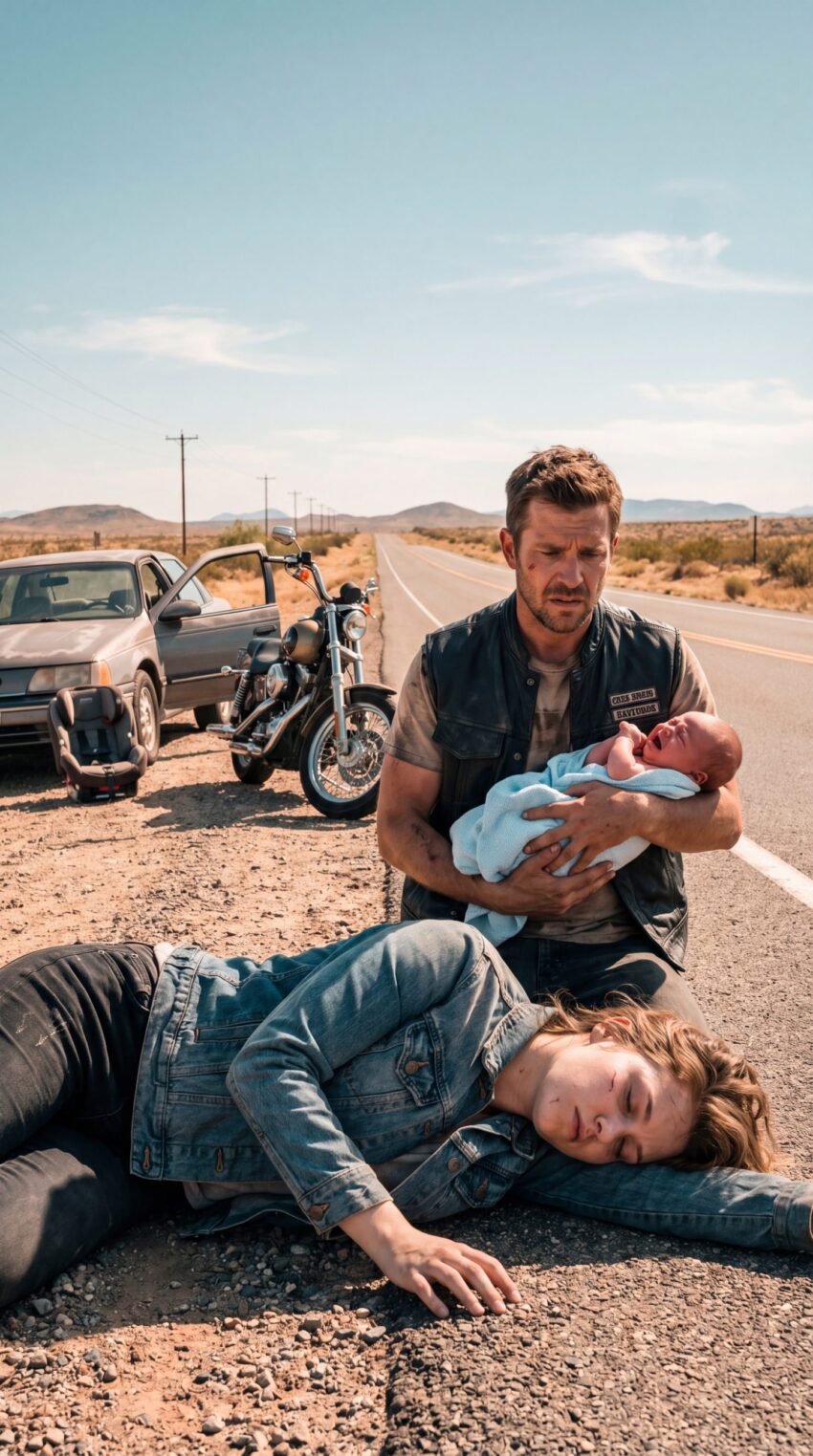 • A Desert Biker Pulled Over After Hearing a Newborn Baby Cry on a Quiet Road — Unaware That Saving the Child That Day Would Lead Him to Recognize the Unconscious Woman as Someone from His Past