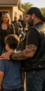 The rider looked like someone out of a movie. He was huge—broad shoulders, thick beard, arms covered in tattoos. A black leather vest hung over his shirt, and on the back was a patch that read “Hells Angels.”