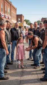 A Limping Little Girl Walked Alone Into a Biker Garage on the Edge of a “Perfect” Town, Too Afraid to Speak About Her Pain — Until the Bikers Brought Her Story Into the Center of the Festival and Forced Everyone to Finally See the Truth