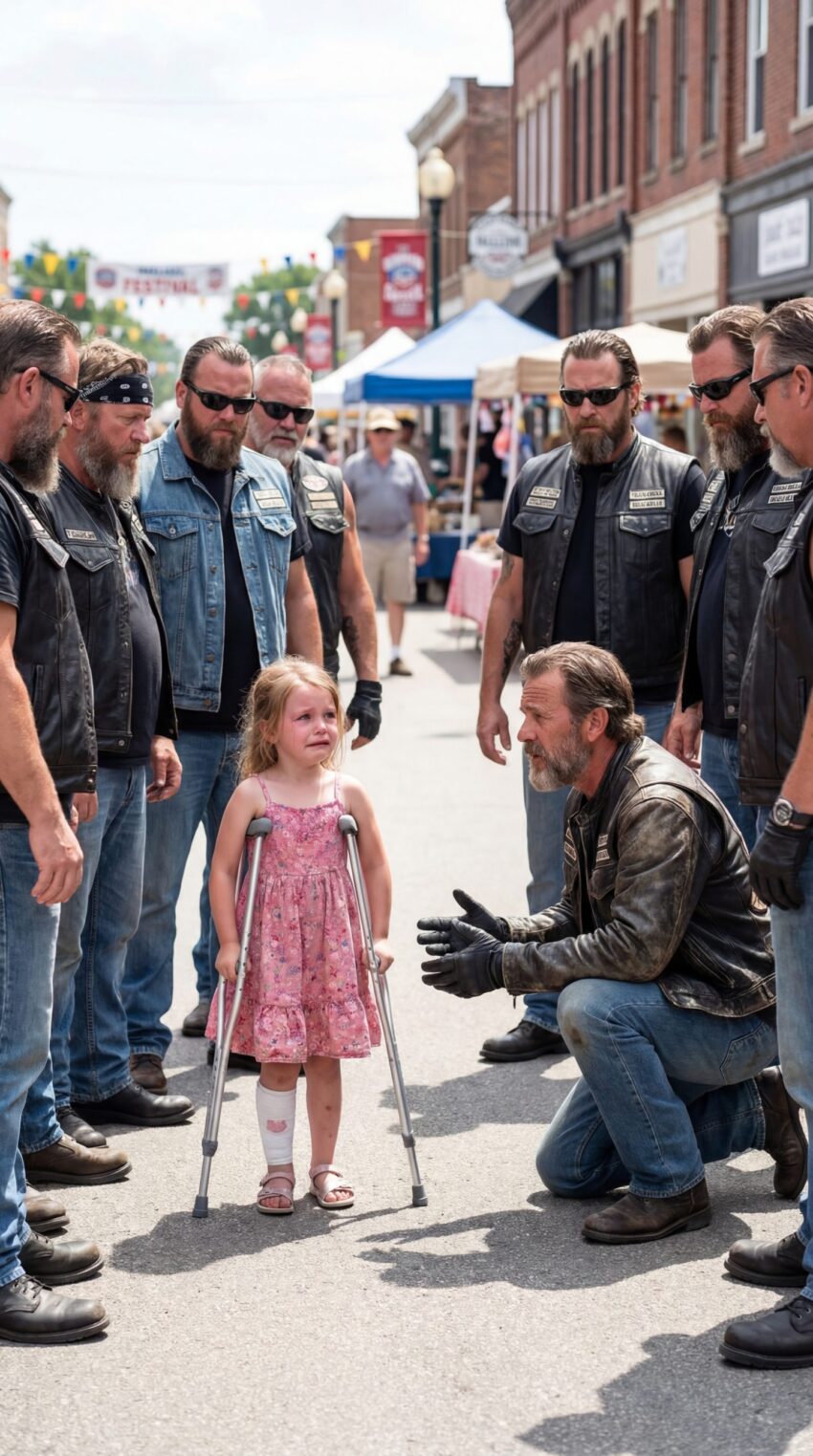 • A Limping Little Girl Walked Alone Into a Biker Garage on the Edge of a “Perfect” Town, Too Afraid to Speak About Her Pain — Until the Bikers Brought Her Story Into the Center of the Festival and Forced Everyone to Finally See the Truth