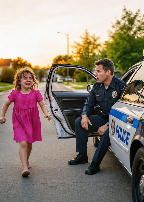 The evening sun was dipping low over the quiet neighborhood when Officer James was wrapping up what he thought would be an uneventful shift. The hum of the patrol car was almost calming when a sudden, desperate sound cut through the calm, the unmistakable cry of a child. He turned his head just in time to see a little girl, no older than six, running toward his car with tears streaking down her cheeks, her small hands trembling as she tried to speak through sobs.