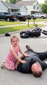 A Feared Biker Lay Injured and Alone on a Silent Road Believing No One Would Help Someone Like Him — Unaware That a Little Girl’s Courage to Stay Would Save His Life, Restore His Daughter, and Change Her Own Future Forever