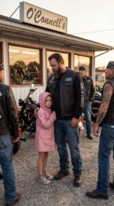 A Frightened Seven-Year-Old Girl Ran Across a Quiet Diner and Grabbed the Vest of the Most Intimidating Biker in the Room Begging Him to Pretend to Be Her Dad — Until the Man Who Walked Through the Door Revealed Why She Had Been Searching for Someone Strong Enough to Stand Beside Her