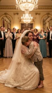 She reached him halfway down the aisle and dropped to her knees without hesitation, pulling him into her arms so tightly it looked like she was trying to make up for years in a single moment. He clung to her with equal desperation, his small frame shaking, his breath coming in uneven bursts that sounded dangerously close to panic.