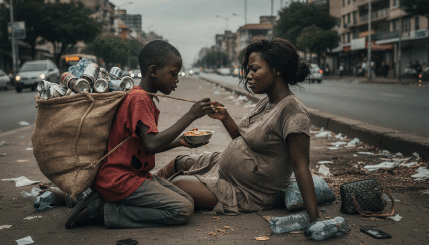 In the scorching heat of Lagos, ten-year-old Emma wandered the bustling streets, a homeless child with no place to call his own. His existence was a constant struggle against hunger and despair, marked by the scars of life on the streets. Each morning, he woke before dawn to collect discarded cans and plastic bottles—his only means of survival. His frail body bore the marks of hardship: ribs visible beneath a torn Manchester United shirt and feet bruised from days spent walking barefoot.