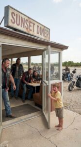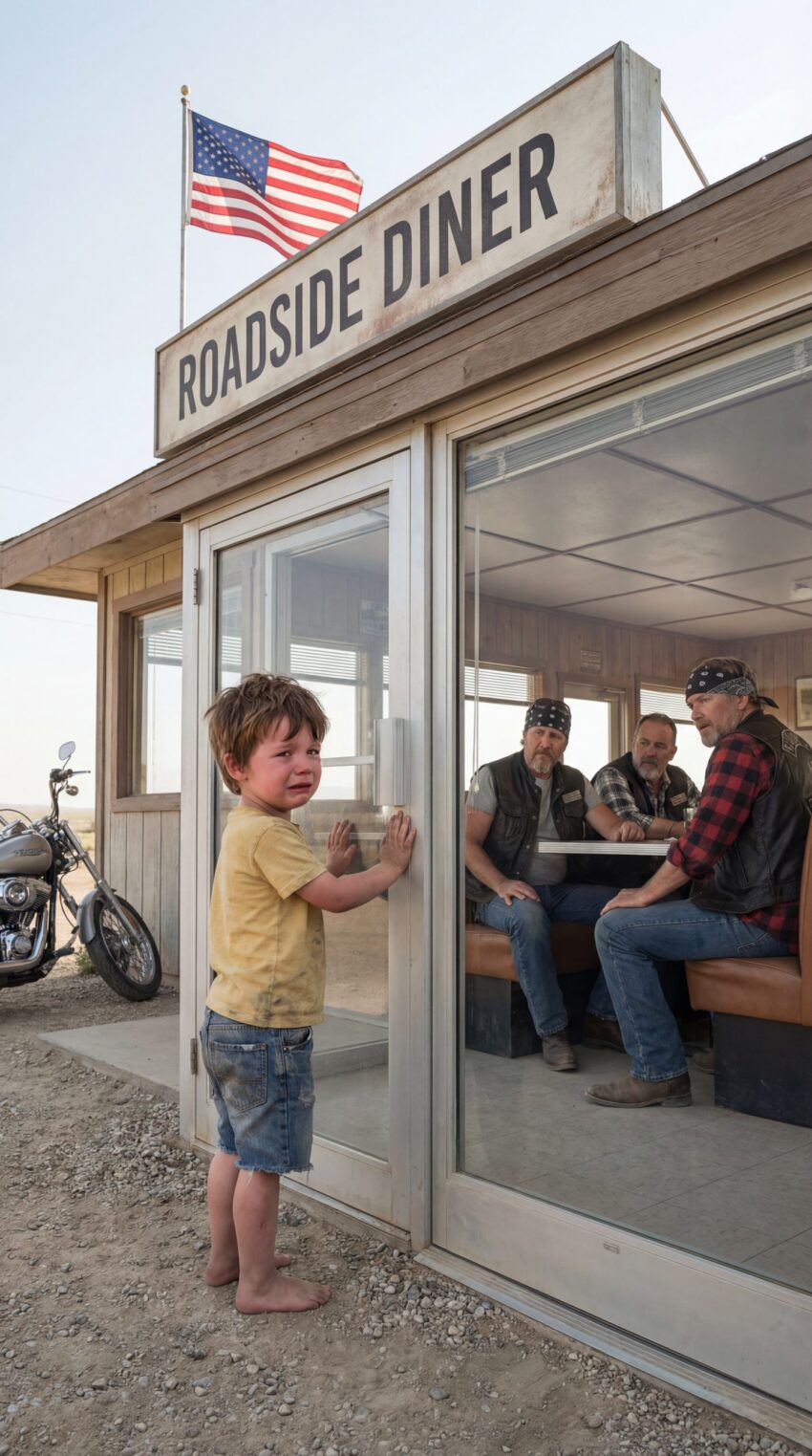 • A Frightened Child Without Shoes Burst Into a Small-Town Diner Begging for Help While No One Dared to Move — Until a Biker Followed His Shaking Finger Toward an Ignored Motel, Unaware That Something Hidden Inside Was About to Be Exposed