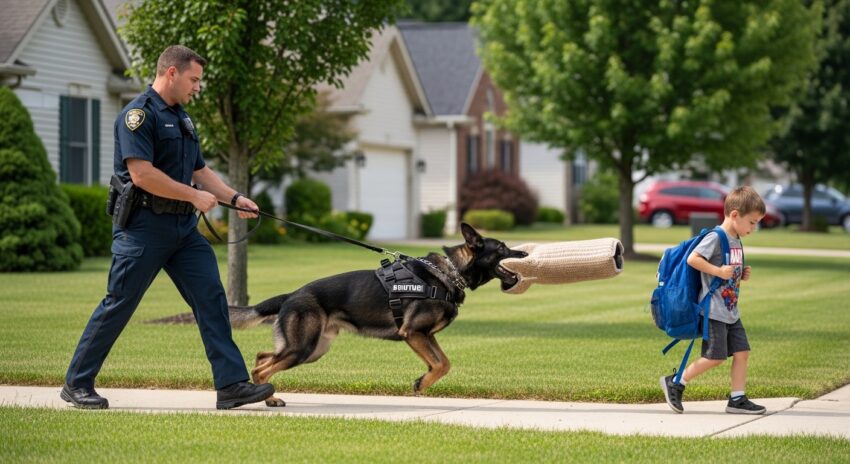 • The Entire Neighborhood Screamed When The Police K9 Pinned An 8-Year-Old Boy To The Concrete. They Thought The Dog Had Gone Rogue. But When The Vicious Jaws Ripped The Boy’s Backpack Wide Open, The Chilling Secret That Spilled Out Stopped Everyone’s Heart.