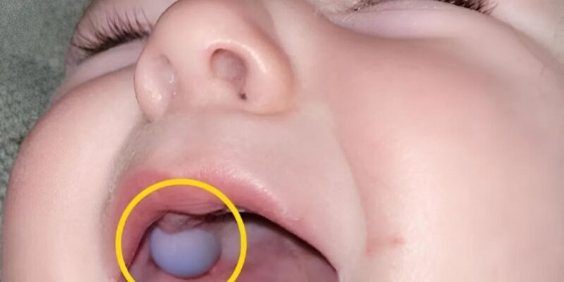 I froze suddenly when he opened his mouth wide, and there, in the flickering light, I saw a terrifying unfamiliar black-and-white “lump” 😨🔍. What is this, right in our little one’s mouth… I thought with sudden horror. It seemed not to move, did not change color, and blended completely with his tiny gums, as if it were a foreign part of the body 🫣🖤.