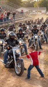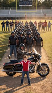 A Small Boy Stepped Onto a Football Field and Threw Himself in Front of a Charging Line of Bikers — Unaware That One Second Later, His Choice Would Stop a Danger the Entire Crowd Failed to Notice