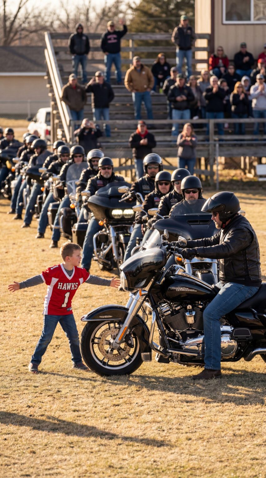 A Small Boy Stepped Onto a Football Field and Threw Himself in Front of a Charging Line of Bikers — Unaware That One Second Later, His Choice Would Stop a Danger the Entire Crowd Failed to Notice