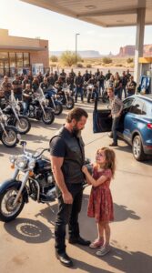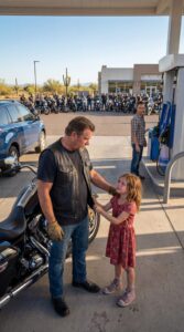 That afternoon, nearly two hundred motorcycles rolled into a roadside diner just outside Kingman, Arizona, breaking that stillness in a wave of thunder. Engines rumbled across the asphalt, chrome caught the sunlight, and heads turned inside the building as if something important had just arrived without warning.