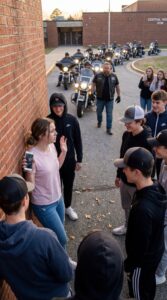 The Black Crest Riders did something no one expected. They stayed involved, but not in the way gossip predicted. They did not loom around the campus making threats. Instead, they showed up at the district’s anti-harassment forum. They donated materials through their construction company contacts to renovate neglected student spaces. They helped fund a scholarship for students who had endured hardship and kept going anyway.