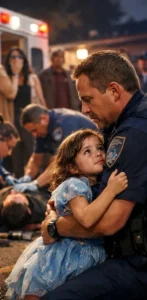 “Hey—hey, sweetheart,” Officer Daniel Reeves called as he approached carefully, crouching down with open hands. His voice was calm, but his eyes moved quickly, assessing injuries, calculating seconds. “We need you to move a little so we can help him, okay?”