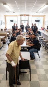 • A 77-Year-Old Grandfather Called “Confused” Wandered Into a Diner Asking Strangers for a Seat — Unaware That the Only Biker Who Didn’t Turn Away Would Notice the Signs on His Wrists and Unravel a Carefully Hidden Story Behind Closed Doors