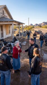 “You can bring those motorcycles around back and come inside,” she said firmly. “I’ll make some coffee.”