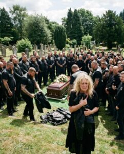 The moment the coffin was lowered, fifty bikers stood up in silence—then began stripping off their vests one by one like they were preparing for something no one understood.