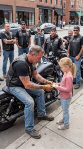 When the bikers noticed a little girl walking toward them alone, the entire group went strangely quiet.