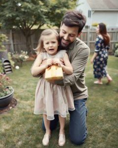 As the afternoon sun began to set, we gathered everyone for cake and presents. Sophie sat on Michael’s lap, her eyes wide with anticipation. Each gift was met with genuine gratitude and hugs, her earlier sadness slowly replaced by the realization that she was cherished and belonged.