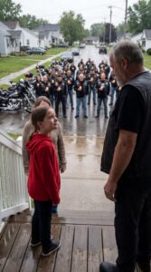 They were broad-shouldered, dressed in dark leather vests soaked through by the steady drizzle. Boots met the pavement with quiet certainty. No one spoke loudly. No one laughed.