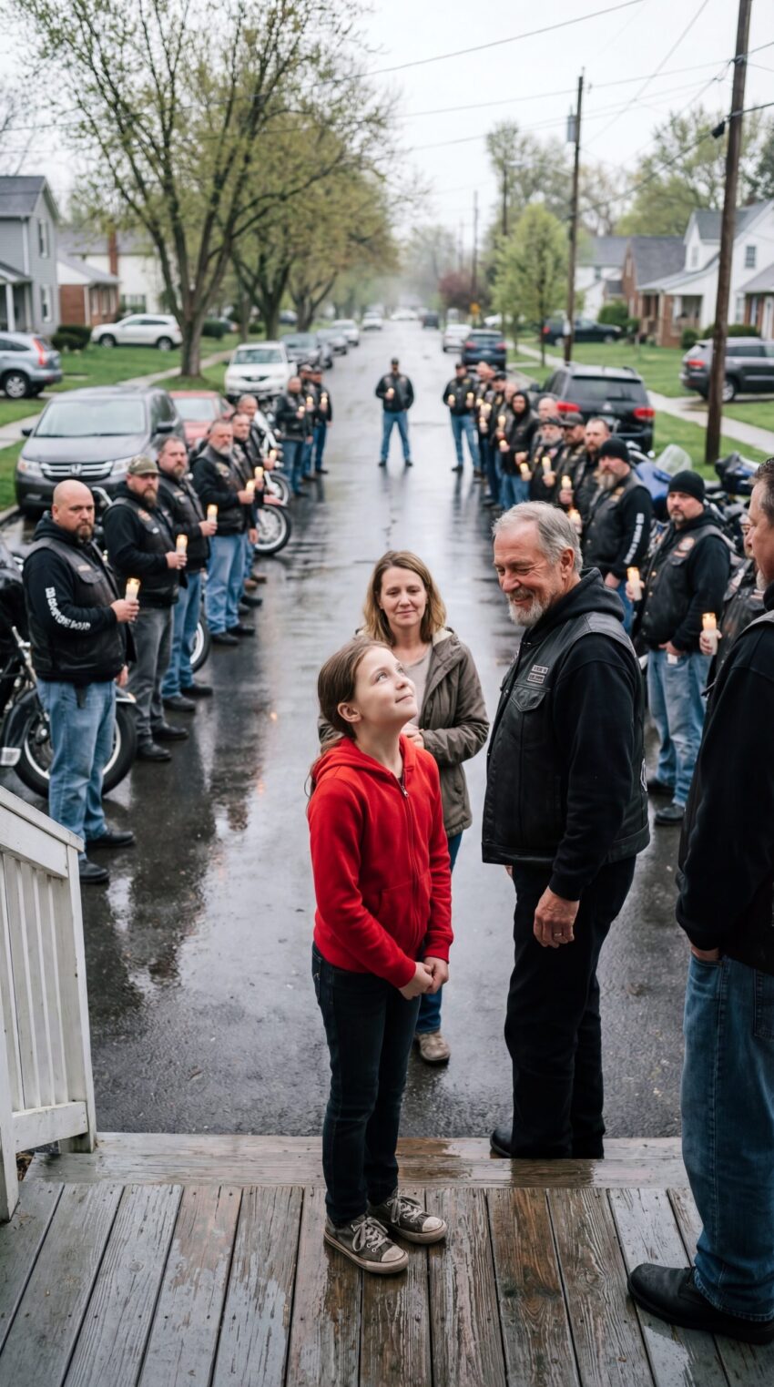 Because sometimes strength doesn’t need to be loud to be real, and sometimes the people who look the most intimidating are the ones who carry the quietest kindness, and sometimes showing up without asking for attention is the purest form of love, and sometimes a child doesn’t need answers as much as she needs presence, and sometimes respect is expressed not in words but in patience, and sometimes community reveals itself not during celebrations but in moments of loss, and sometimes protection comes not from force but from standing still with purpose, and sometimes people realize too late that they judged a moment before understanding it, and sometimes a single question from a child can change how an entire street sees the world, and sometimes even on the coldest nights, a few small lights are enough to remind someone that they are not alone.