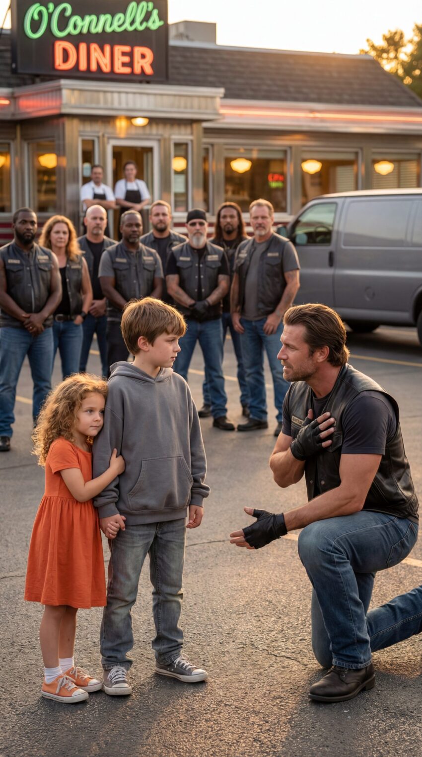 The back parking lot of Harper’s Diner in Brookfield, Indiana, was the kind of place most people ignored. At sunset, it carried a quiet, worn-out beauty—oil stains darkening the asphalt, the soft hum of an aging neon sign, and the faint smell of grilled food drifting through the air.