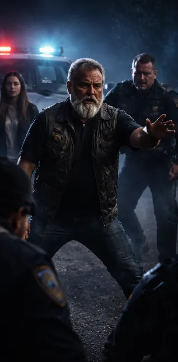 A police car skidded into view, red and blue lights exploding across the scene, turning everything into chaos. My breath caught as the doors flew open and two officers stepped out, hands already near their holsters.