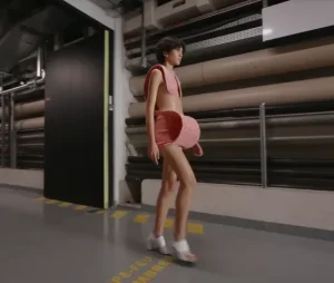 Lantink’s futuristic vision challenged fashion conventions with striking menswear pieces featuring pneumatic silhouettes, body-hair print jumpsuits, asymmetric skirts, and voluminous cutouts. Some praised the innovation and artistry behind these designs, while others reacted with shock and humor, likening the looks to Halloween costumes or questioning the choices made for the models.